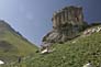 FelsformationIm Schatten dieses felsens, kurz vor dem Pass in 3000 m Höhe verließen uns die Kräfte und wir nächtigten in unseren Zelten. |