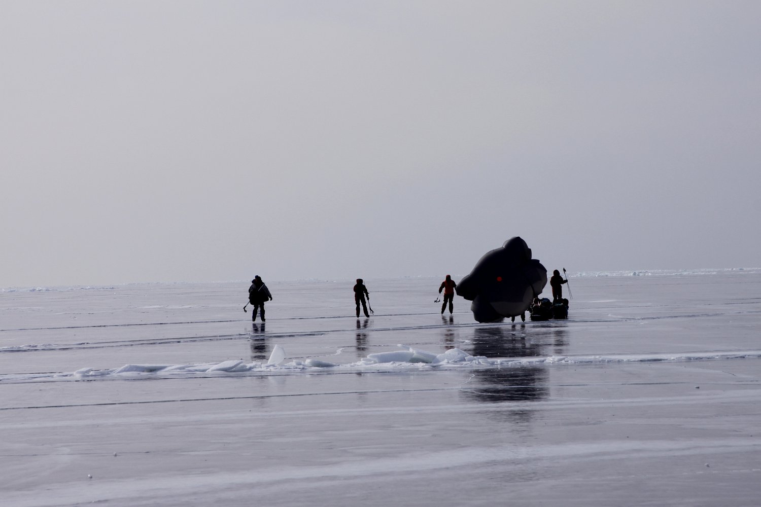 21 Eine Gruppe auf Schlittschuhen. Ihre Schlitten lassen sie durch einen Drachen vom Wind ziehen. Die hatten Spaß, ich wanderte in den Wind hinein. brrrr