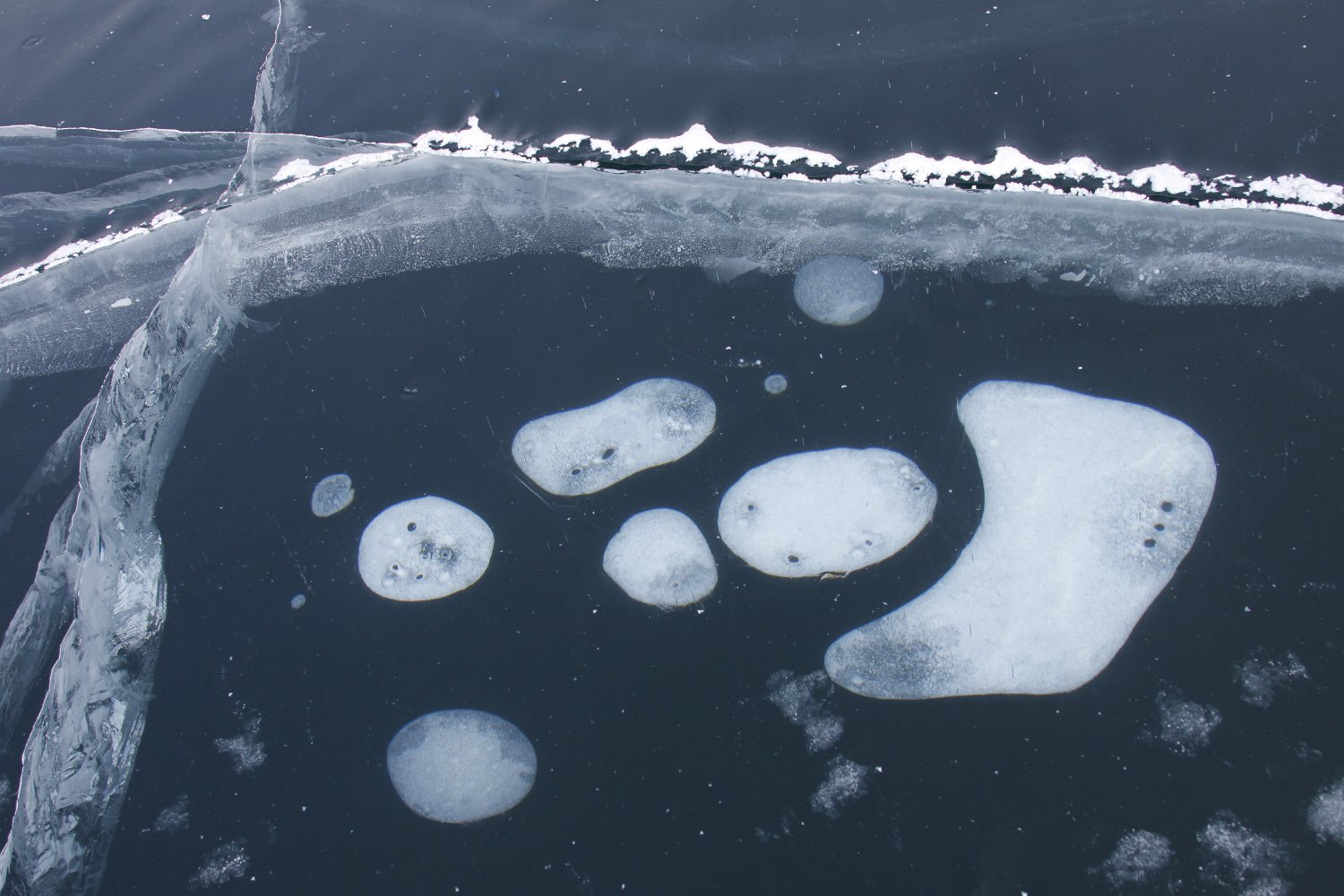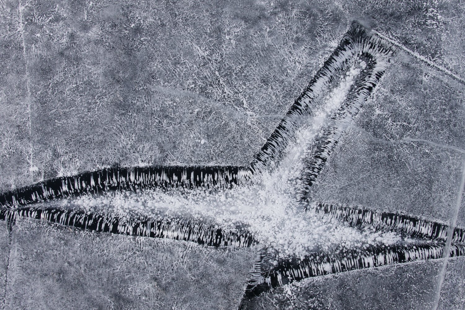6 Auch das glatteste Eis ist von vielen Rissen durchzogen. Lädt zur Meditation ein.
